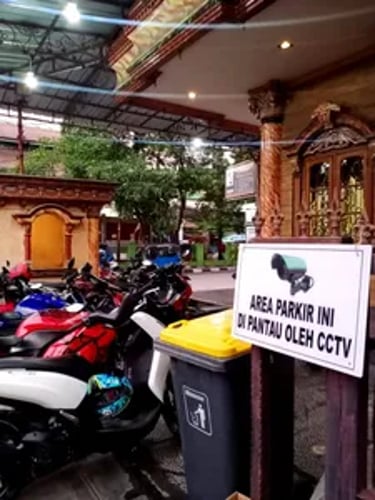 Banyak CCTV, ada security jaga dan ada portal untuk parkir motor malam